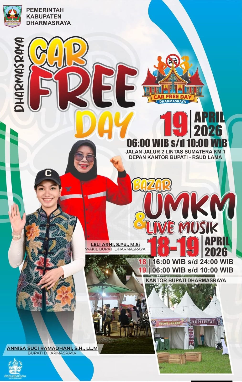 Beritanda.net – Mendorong gaya hidup, sekaligus menggerakkan perekonomian masyarakat dengan melibatkan pelaku usaha mikro kecil menengah (UMKM) lokal, Pemerintah Kabupaten (Pemkab) Dharmasraya mengagendakan event Car Free Day (CFD) dan Pasar Kuliner pada tanggal 18 dan 19 April 2026 di halaman Kantor Bupati setempat.