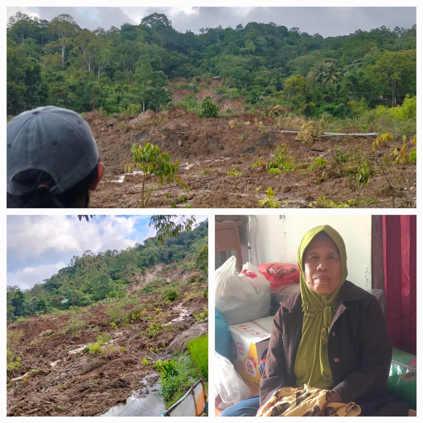 “Sebelum kejadian, Kami berkumpul di rumah Saudara disebelah Rumah. Kami sempat terisolasi, karena akses jalan telah terputus akibat tanah longsor dari kedua arah, beruntung petugas bersama warga datang membuka jalan seadanya sehingga bisa meninggalkan tempat tersebut,” ujarnya masih nelangsa.