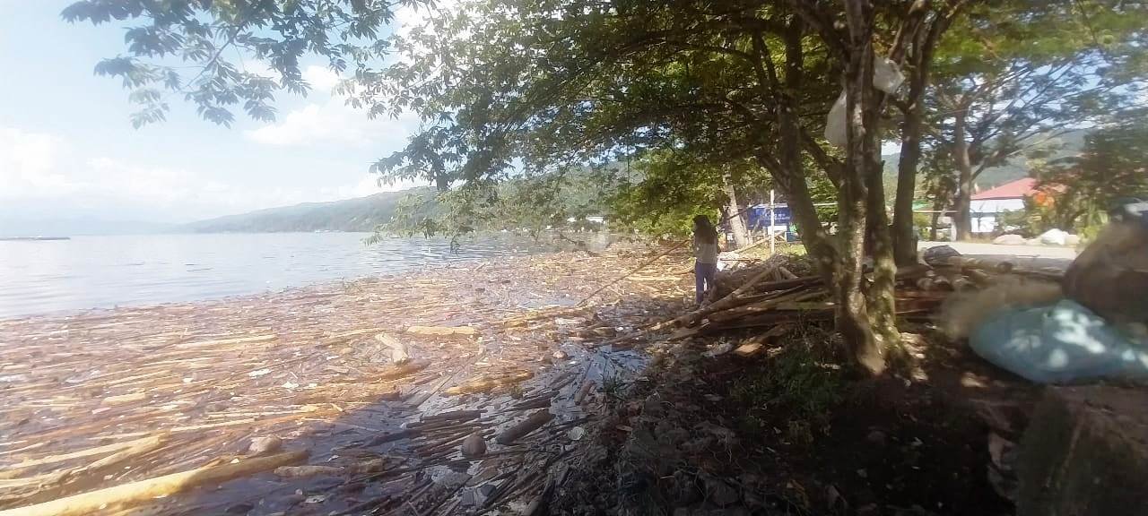 Sebaran sampah hampir mencapai 20 meter dari pinggir danau. Akibatnya, selain menghasilkan aroma kurang sedap, sampah berupa serpihan kayu-kayu berbagai ukuran tersebut, bercampur dengan material plastik, dedaunan dan buah buah kelapa yang terbawa oleh besarnya banjir dari kawasan hulu. Kondisi itu benar-benar nyaris menutupi permukaan danau.