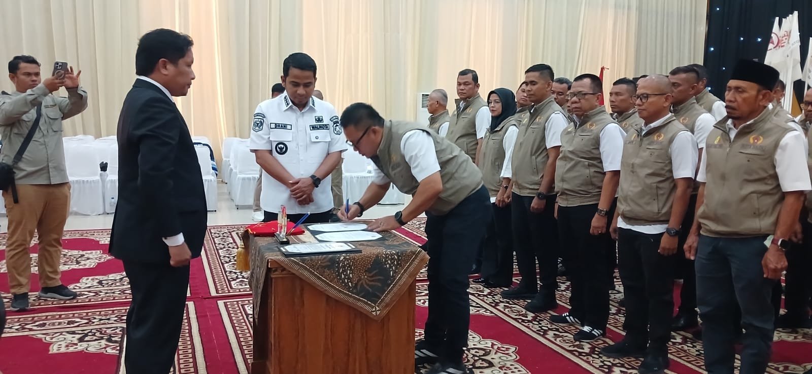 Prosesi pelantikan yang dilakukan Ketua Umum KONI Sumatera Barat Hamdanus, langsung dihadiri Wali Kota Solok Dr. Ramadhani Kirana Putra, unsur Forkopimda, DPRD Kota Solok, KEtua LKAAM dan Bundo Kanduang, sejumlah kepala OPD, serta jajaran pengurus lain KONI Sumbar dan pengurus KONI Kabupaten/Kota lain, Rabu (22/4/2026) di gedung Kubuang 13, Kota Solok
