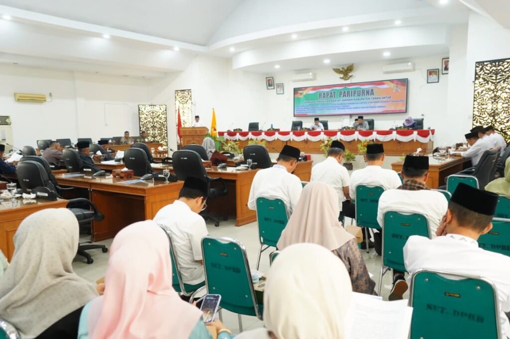 Rapat paripurna tersebut dipimpin oleh Ketua DPRD Anton Yondra, didampingi Wakil Ketua DPRD Nurhamdi Zahari dan Kamrita. Turut hadir Sekretaris Dewan Alfian Fikri, unsur Forkopimda, para asisten, staf ahli, kepala OPD, camat, serta wali nagari se-Kabupaten Tanah Datar.