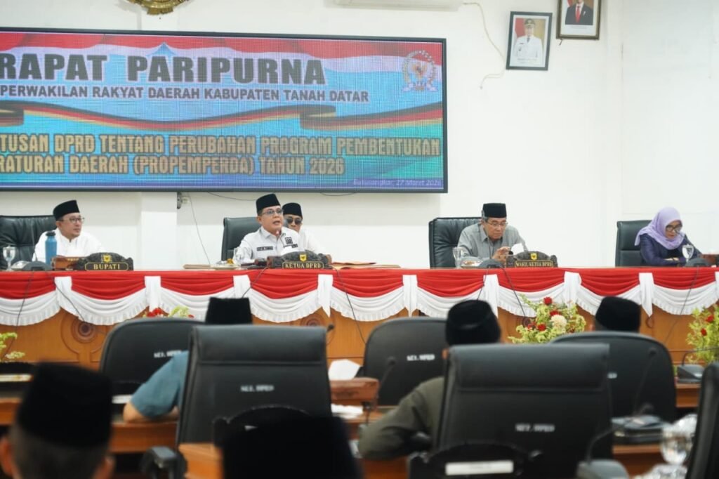 Beritanda.net – Bupati Tanah Datar, Eka Putra, menyampaikan Nota Penjelasan terhadap tiga Rancangan Peraturan Daerah (Ranperda) dalam Rapat Paripurna DPRD Tanah Datar, Jumat (27/3/2026).