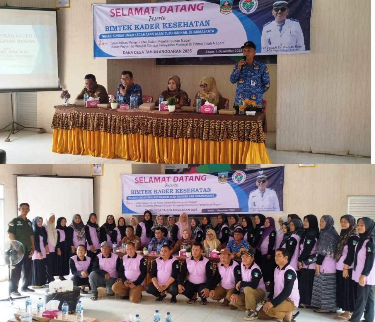 Bimbingan Teknologi (Bimtek) dalam rangka meningkatkan kompetensi kader kesehatan di Nagari Sungai Limau saat itu, menghadirkan narasumber dari Dinas Pemberdayaan Masyarakat dan Desa (PMD) Kabupaten Dharmasraya.