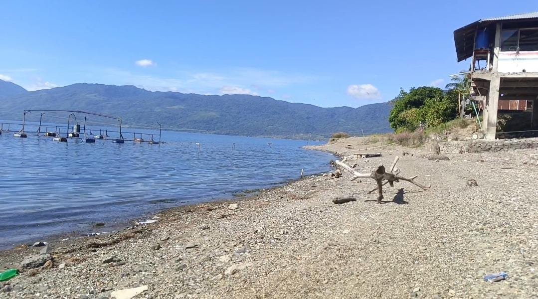 Kondisi itu, menyebabkan sebagian area tepian Danau yang biasa tergenang, kini tampak mengering hingga membentuk pantai.