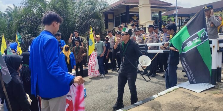 Gelar Demo ke Mapolres Dharmasraya, Mahasiswa dan OKP Tuntut Polisi Mengusut Sejumlah Kasus kriminal