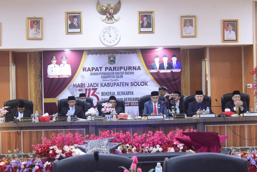 Rapat Paripurna Istimewa Dewan Perwakilan Rakyat Daerah (DPRD) ini, dipimpin Ketua Ivoni Munir didampingi Wakil Ketua Armen Plani dan Mukhlis, juga menampilkan kilas balik perjalanan Kabupaten Solok selama tahun 2025 yang memuat berbagai capaian kinerja pemerintah daerah di berbagai sektor pembangunan.