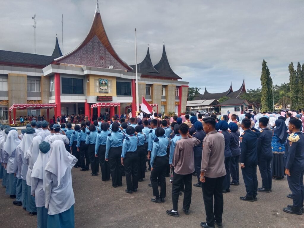 Beritanda.net – Peringatan Hari Pahlawan ke-80 sekaligus Hari Kesehatan Nasional (HKN) ke-61 di Dharmasraya ditandai dengan Upacara Bendera dengan Inspektur Upacara Bupati Annisa Suci Ramadhani, berlangsung khidmad, Senin (10/11/25) di halaman kantor bupati setempat.
