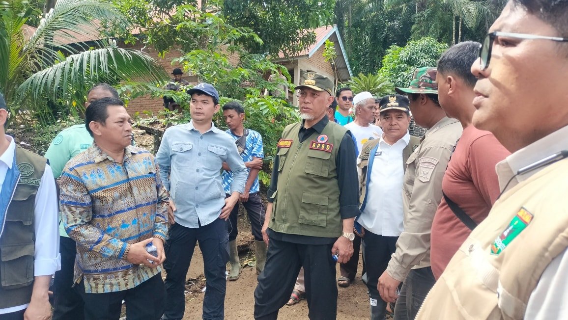 Mahyeldi juga meninjau kondisi pengungsi yang sementara menempati bekas bangunan pasar. Sekitar 60 warga berada di sana, sementara sebagian lainnya mengungsi ke rumah-rumah di dataran yang lebih tinggi.