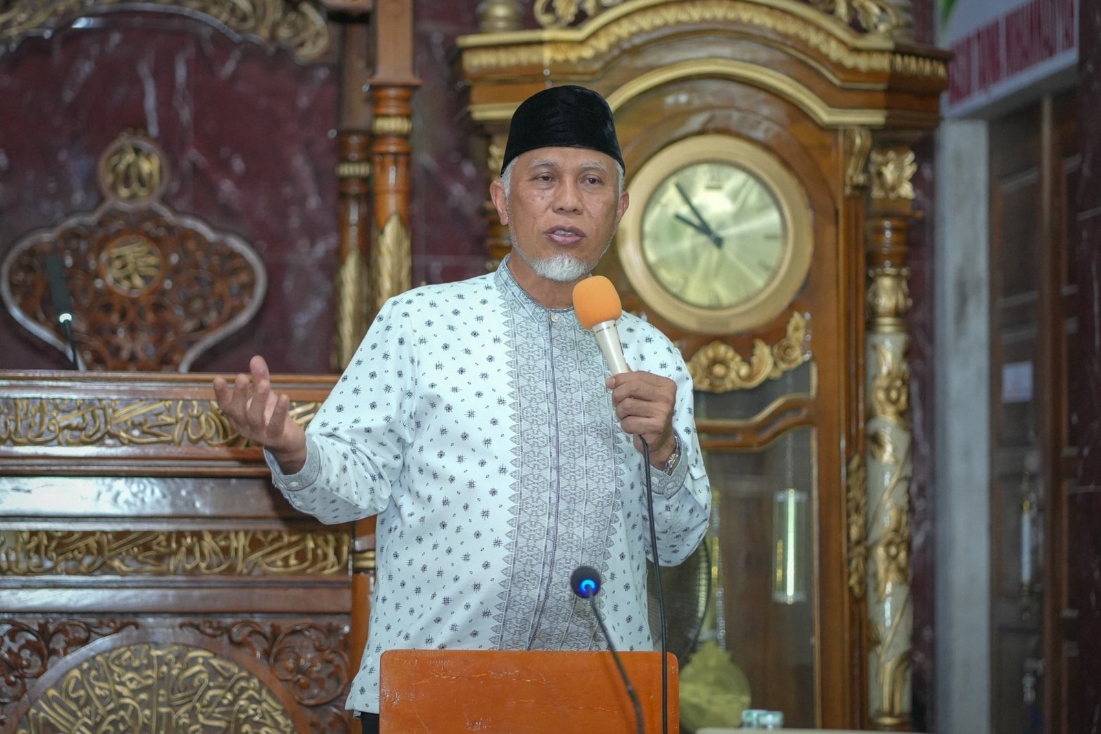 Gubernur Mahyeldi ketika memimpin safari ramadhan di Masjid Taqwa Kampung Tangah, Nagari Salareh Air Timur, Kecamatan Palembayan, Kabupaten Agam, Jumat (20/2/2026),
