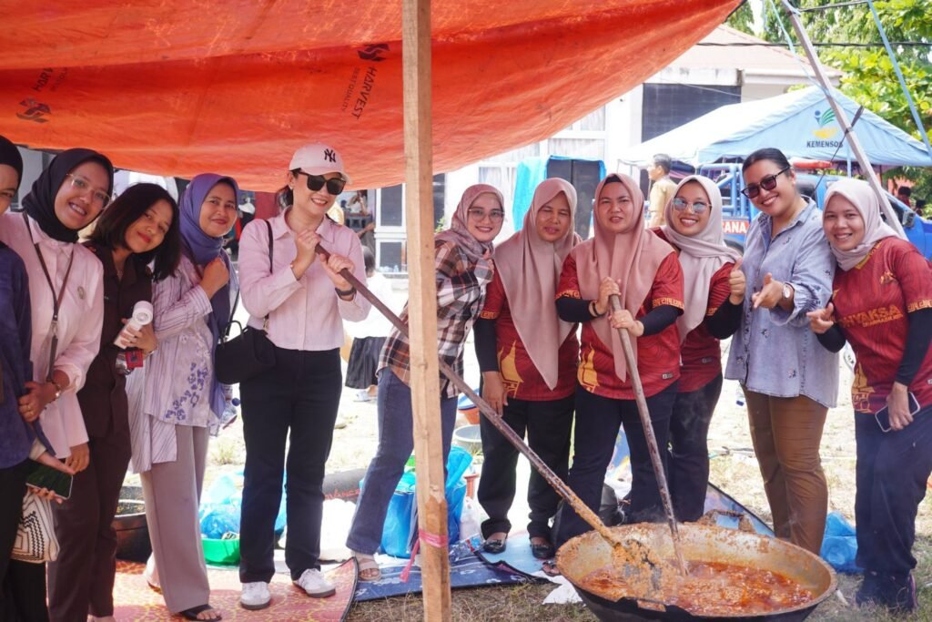 Guna menyemangati kegiatan itu,  Bupati Annisa turut membaur bersama kaum ibu, merasakan langsung suasana memasak rendang di tengah asap tungku kayu bakar yang mengepul dan memerihkan mata.