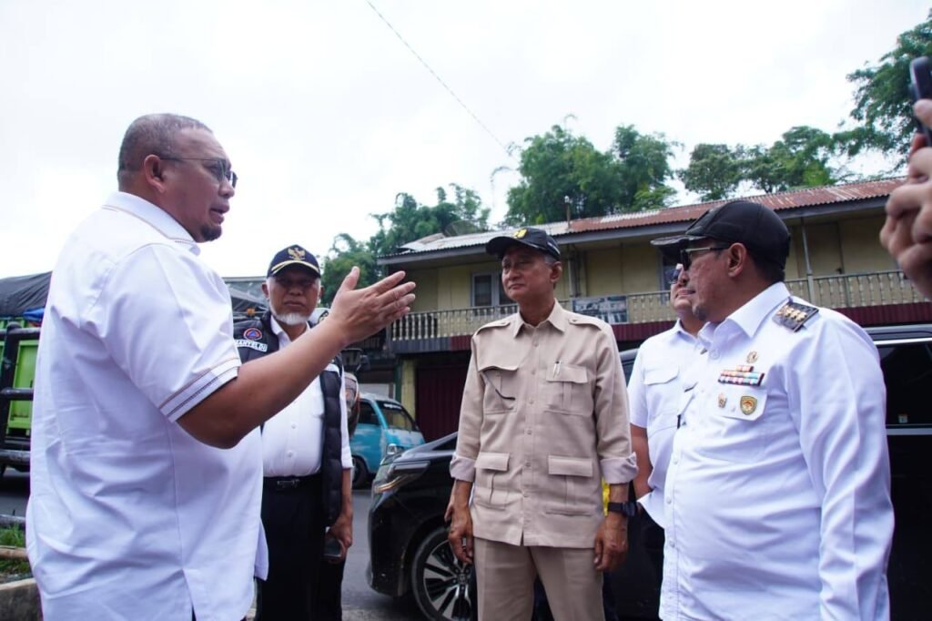 Setelah meninjau pengerjaan jalan Lembah Anai, Menteri PU Dody Hanggodo dan rombongan juga meninjau kondisi jalan di pasar Koto Baru.
