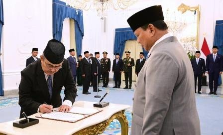 Menyusul pembacaan Keppres, Presiden Prabowo mengambil sumpah jabatan para pejabat yang dilantik.