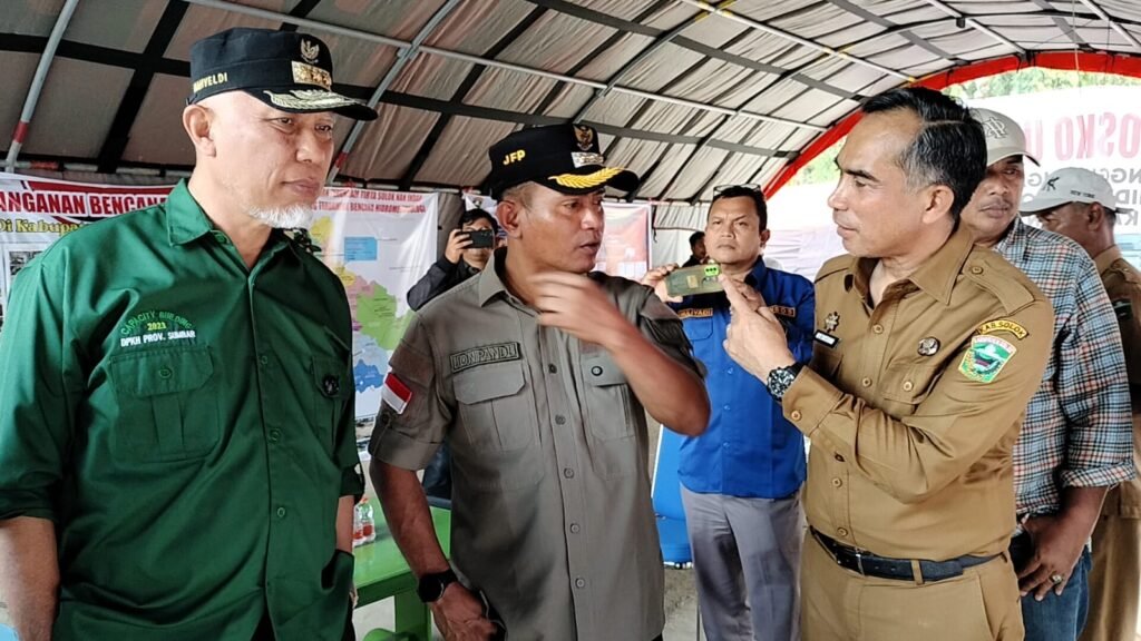 Perhatian Gubernur Mahyeldi bahkan tumpah di Posko Utama Penanganan Bencana Alam Kabupaten Solok di Koto Baru, mengamati data bencana yang dipaparkan Bupati Solok Jon Firman Pandu bersama Sekretaris Daerah Medison.