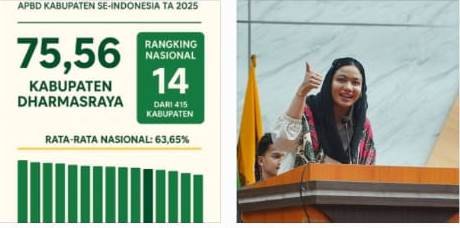 Beritanda.net – Kabupaten Dharmasraya mencatat prestasi membanggakan dalam pengelolaan keuangan daerah. Hingga periode tanggal 16 November 2025, realisasi belanja APBD Kabupaten Dharmasraya telah mencapai 75,56 persen. Fenomena itu menempatkan daerah yang dipimpin Bupati perempuan itu sebagai peringkat 14 dari 415 kabupaten se-Indonesia.