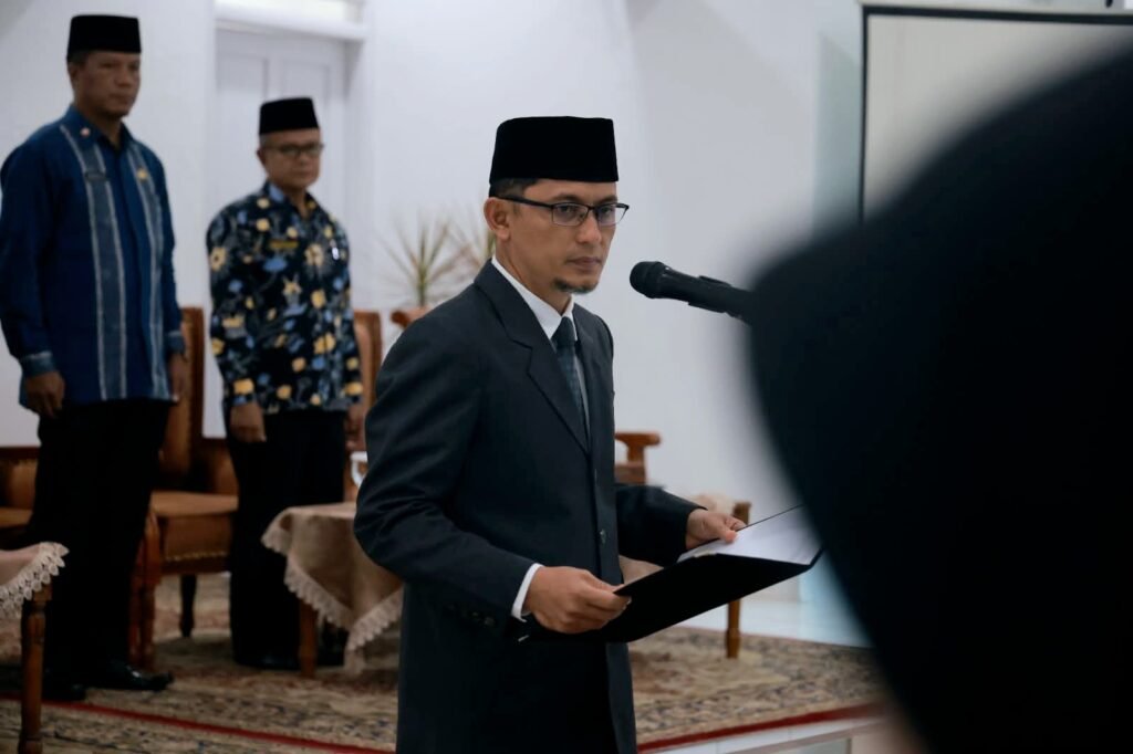 Beritanda.net – Sekretaris Daerah (Sekda) Abdurrahman Hadi, S.STP, M.Si, mewakili Bupati Tanah Datar, melantik dan mengambil sumpah jabatan pejabat manajerial serta menyerahkan Surat Keputusan (SK) Bupati tentang penugasan PNS sebagai Kepala UPTD TK, SD, dan SMP, Kamis (23/4/2026) di Aula Kantor Bupati setempat di Pagaruyung.