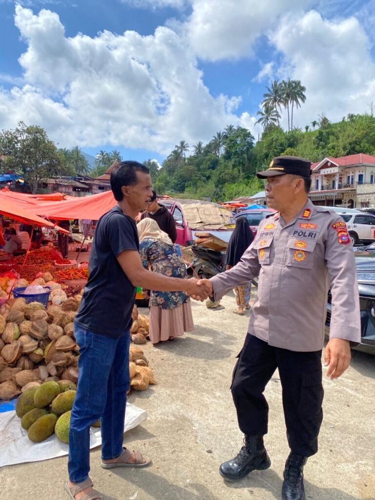 Salah satu media yang dilakukan petugas Polres Solok dalam memberikan himbauan simpatik kepada warga, adalah dengan memasuki pasar-pasar tradisional di nagari-nagari tertentu, seperti Pasar Nagari Talang, kecamatan Gunung Talang, Rabu (24/12/2025)