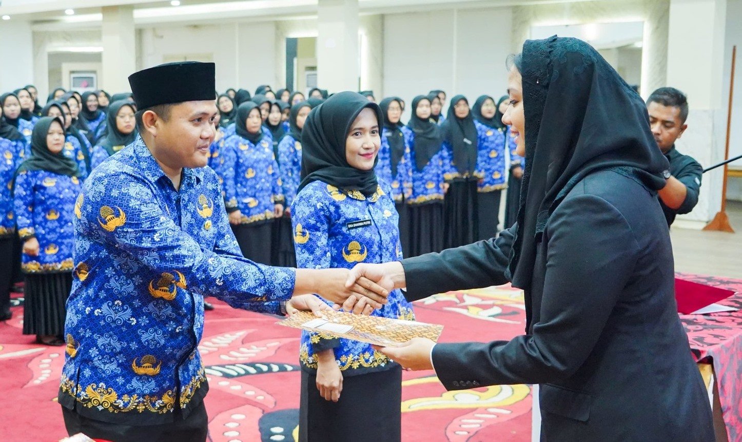 Mengirngi pelantikan, Bupati Annisa menyerahkan SK kepada pegawai PPPK