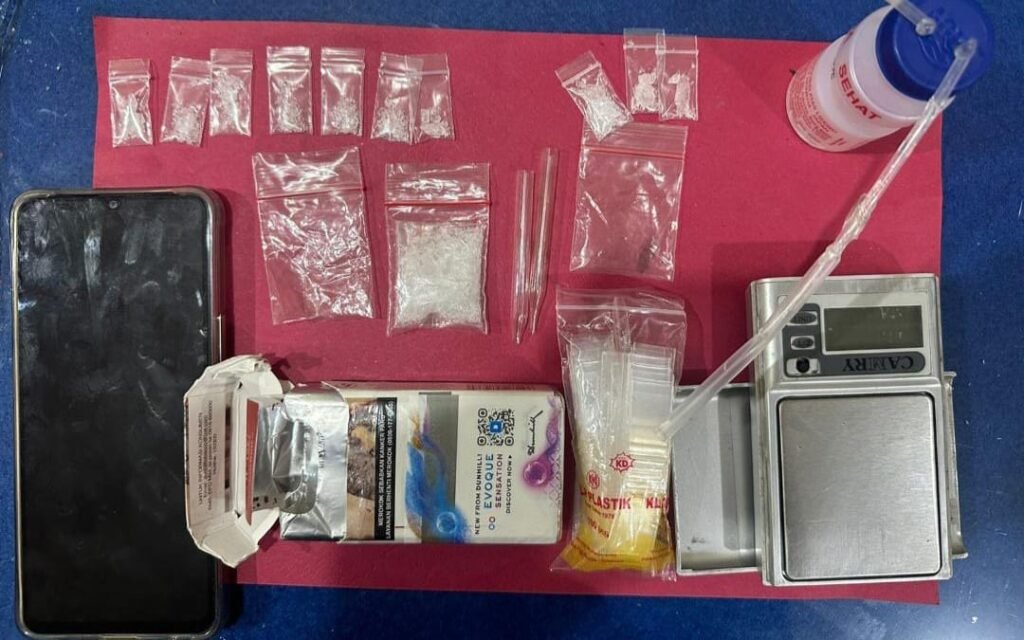Dari tangan tersangka, penyidik dapat mengamankan beberapa barang bukti (BB). Diantaranya, 1 buah plastik klip bening, didalamnya berisikan butiran kristal bening diduga Narkotika Golongan I jenis Shabu. 1 buah kotak rokok dunhil warna putih yang didalamnya terdapat 1 buah plastik klip bening didalamnya berisikan 3 buah plastik klip bening ukuran kecil, didalamnya berisikan butiran kristal bening diduga Narkotika Golongan I jenis Shabu.